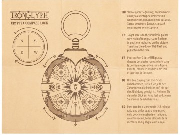 Безопасность информации — актуальная проблема в современном мире. Ее решением может стать хранение файлов на флешке Cryptex Compass Lock. Цифровые данные защищены механически: открыть такую флешку сможет только тот, кто знает секретную комбинацию расположения шестеренок. Этот шифр сложно описать словами, его можно только запомнить зрительно. Для удобства запоминания элементы шифра выполнены в виде сторон света.