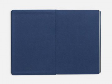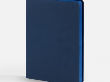 Ежедневник с твердой обложкой и тонированным обрезом, выполнен из материала Soft Touch, синий НН, дополнен ляссе в цвет обложки.