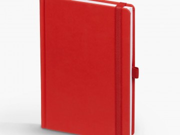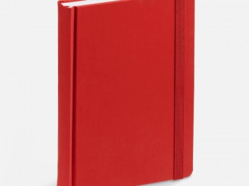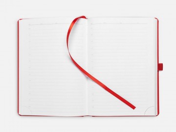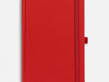 Ежедневник с твердой обложкой без поролона, выполнен из материала Soft Touch Ultra, красный РР, дополнен резинкой шириной 1 см, петлей-резинкой для ручки, капталом и ляссе красного цвета.
