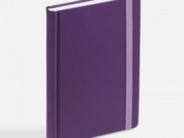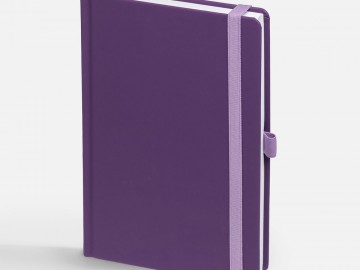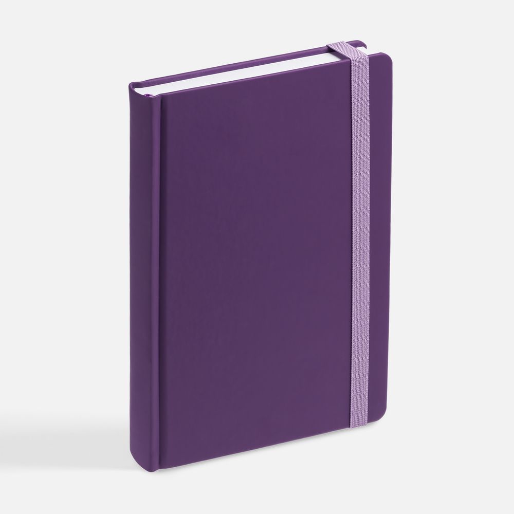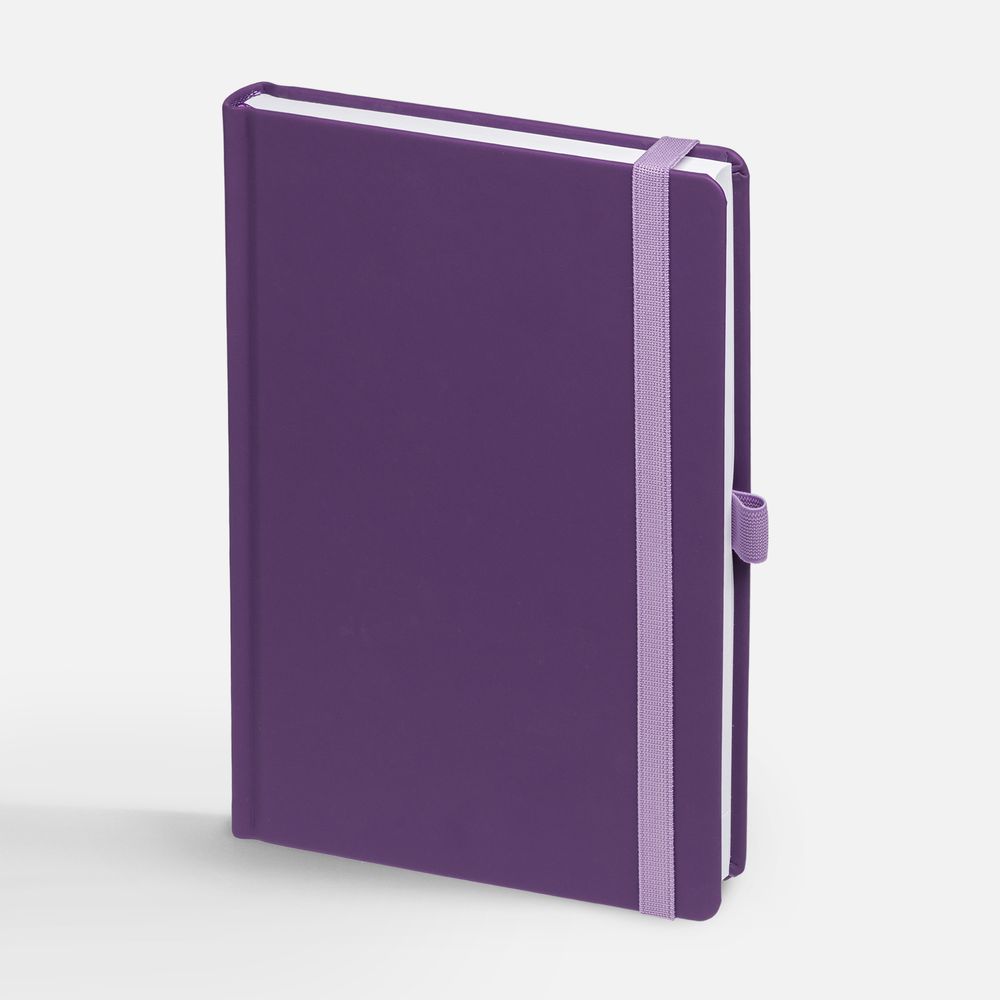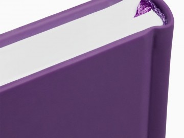 Ежедневник с твердой обложкой без поролона, выполнен из материала Soft Touch, фиолетовый UU, дополнен резинкой шириной 1 см, петлей-резинкой для ручки, капталом и ляссе в цвет обложки.