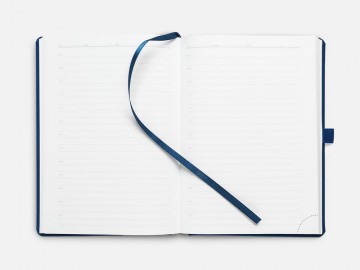 Ежедневник с твердой обложкой без поролона, выполнен из материала Soft Touch Ultra, синий НН, дополнен резинкой шириной 1 см, петлей-резинкой для ручки, капталом и ляссе синего цвета.