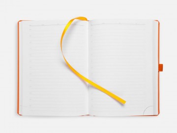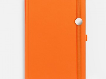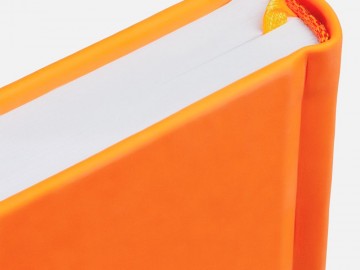 Ежедневник с твердой обложкой без поролона, выполнен из материала Soft Touch, оранжевый ОО, дополнен резинкой шириной 1 см, петлей-резинкой для ручки, капталом и ляссе оранжевого цвета.