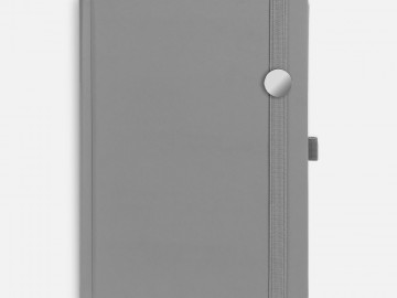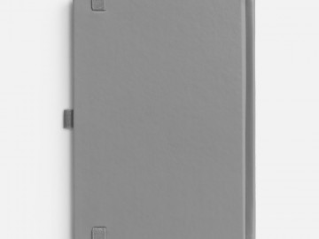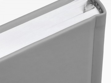 Ежедневник с твердой обложкой без поролона, выполнен из материала Soft Touch, серый СС, дополнен резинкой шириной 1 см, петлей-резинкой для ручки, капталом и ляссе серого цвета.
