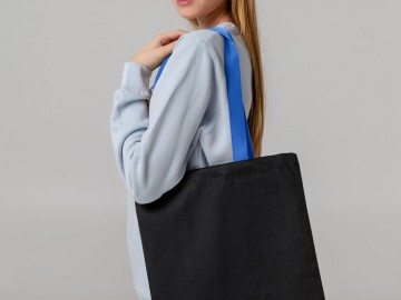 Холщовая сумка BrighTone, черная с ярко-синими ручками