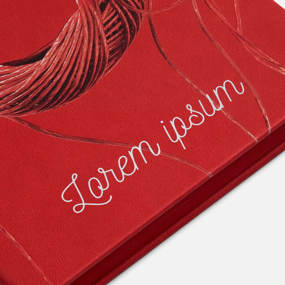 Ежедневник с твердой обложкой и тонированным обрезом. Выполнен из материала Latte, красный, дополнен ляссе в цвет обложки.