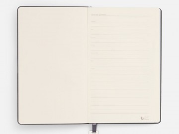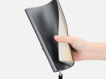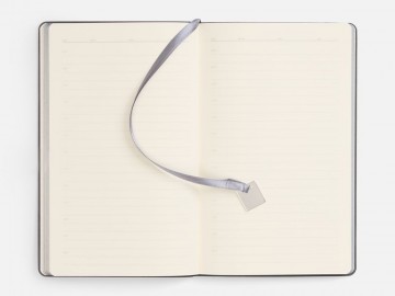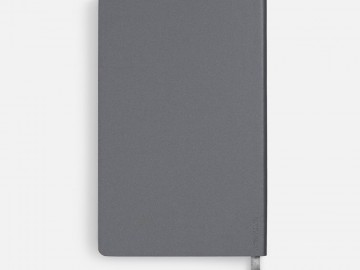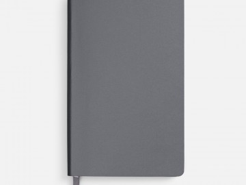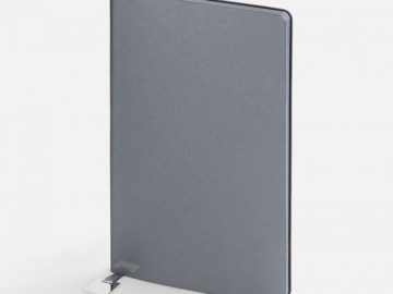 Ежедневник с гибкой обложкой, выполнен из материалов Soft Touch Pearl, серый СС, и Latte, серый (внутренняя часть обложки), дополнен ляссе в цвет обложки с металлическим шильдиком.