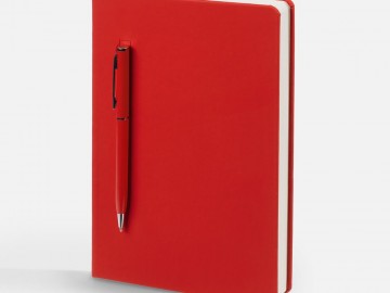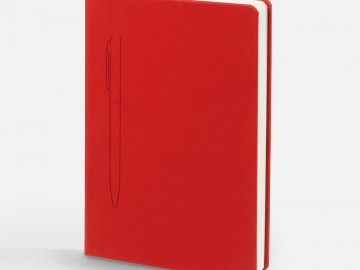 Ежедневник в твердой обложке, выполненной из материала Soft Touch Ultra, красный РР, дополнен цветным ляссе и магнитом, удерживающим ручку.