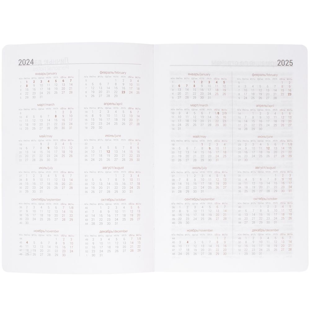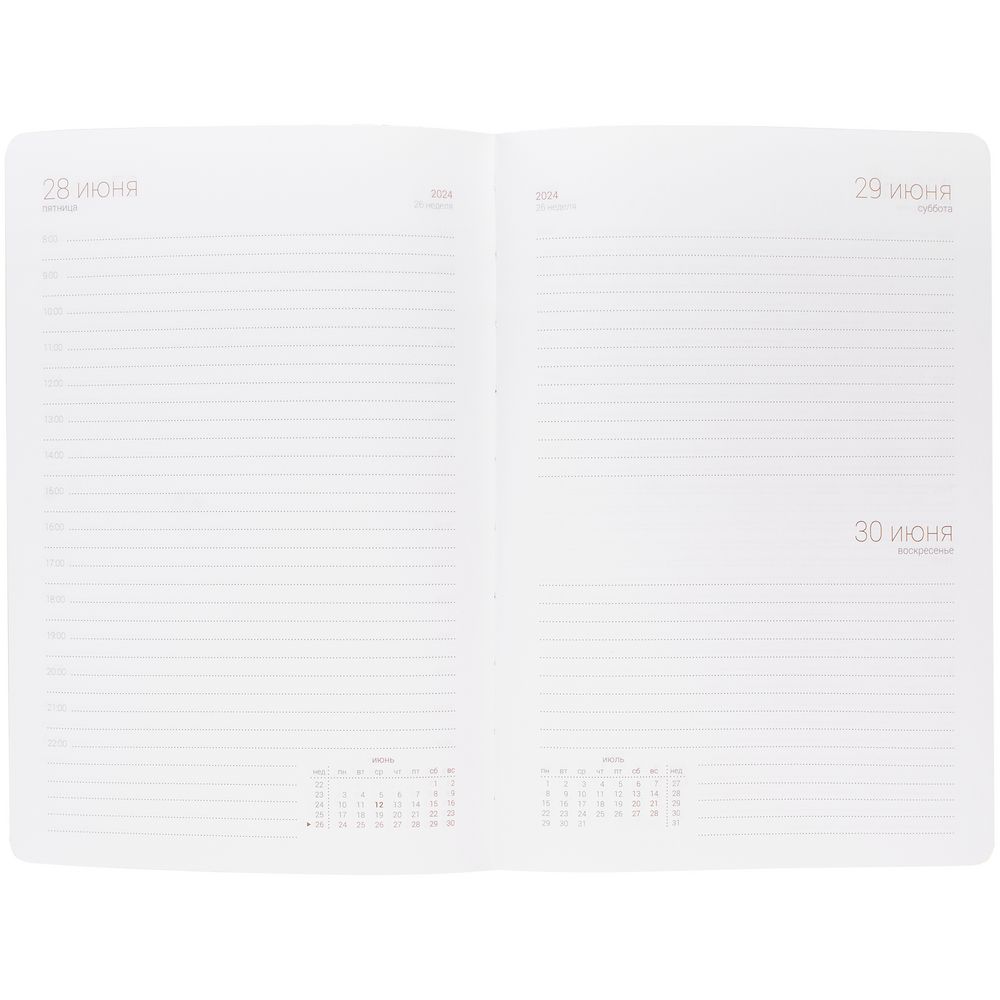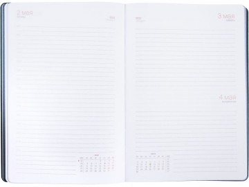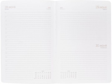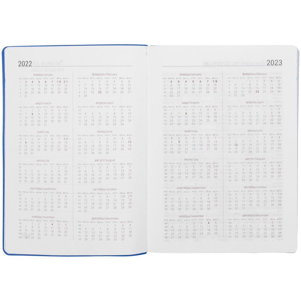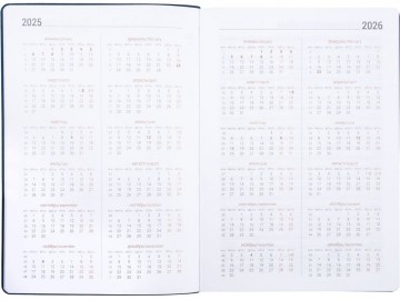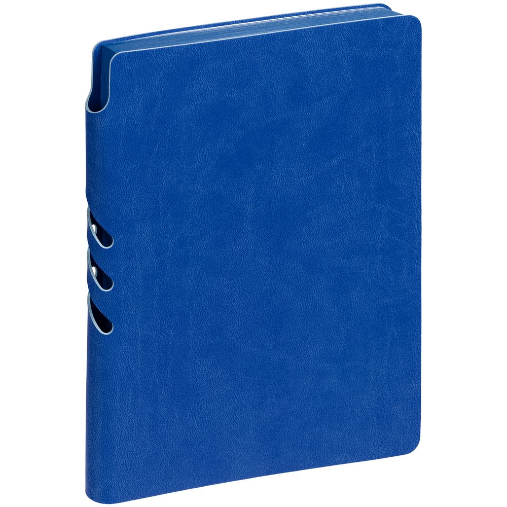 Гибкая обложка ежедневника выполнена из материала Latte, синий НН. Внутри корешка — специальное место для крепления ручки размером до 15х0,9 см.