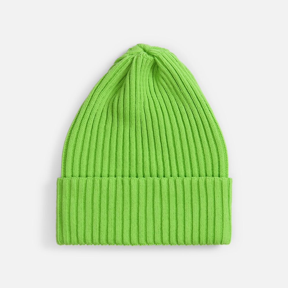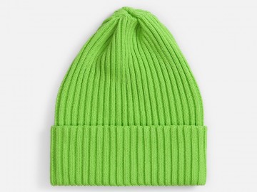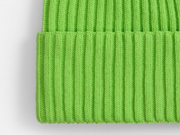 Однослойная шапка фактурной вязки с двойным отворотом.