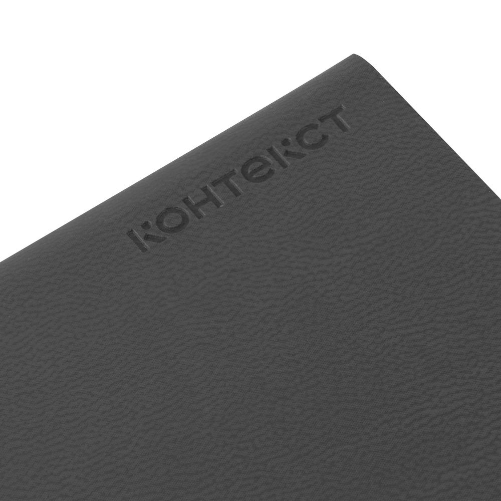 Ежедневник в гибкой обложке выполнен из материала Latte, темно-серый.