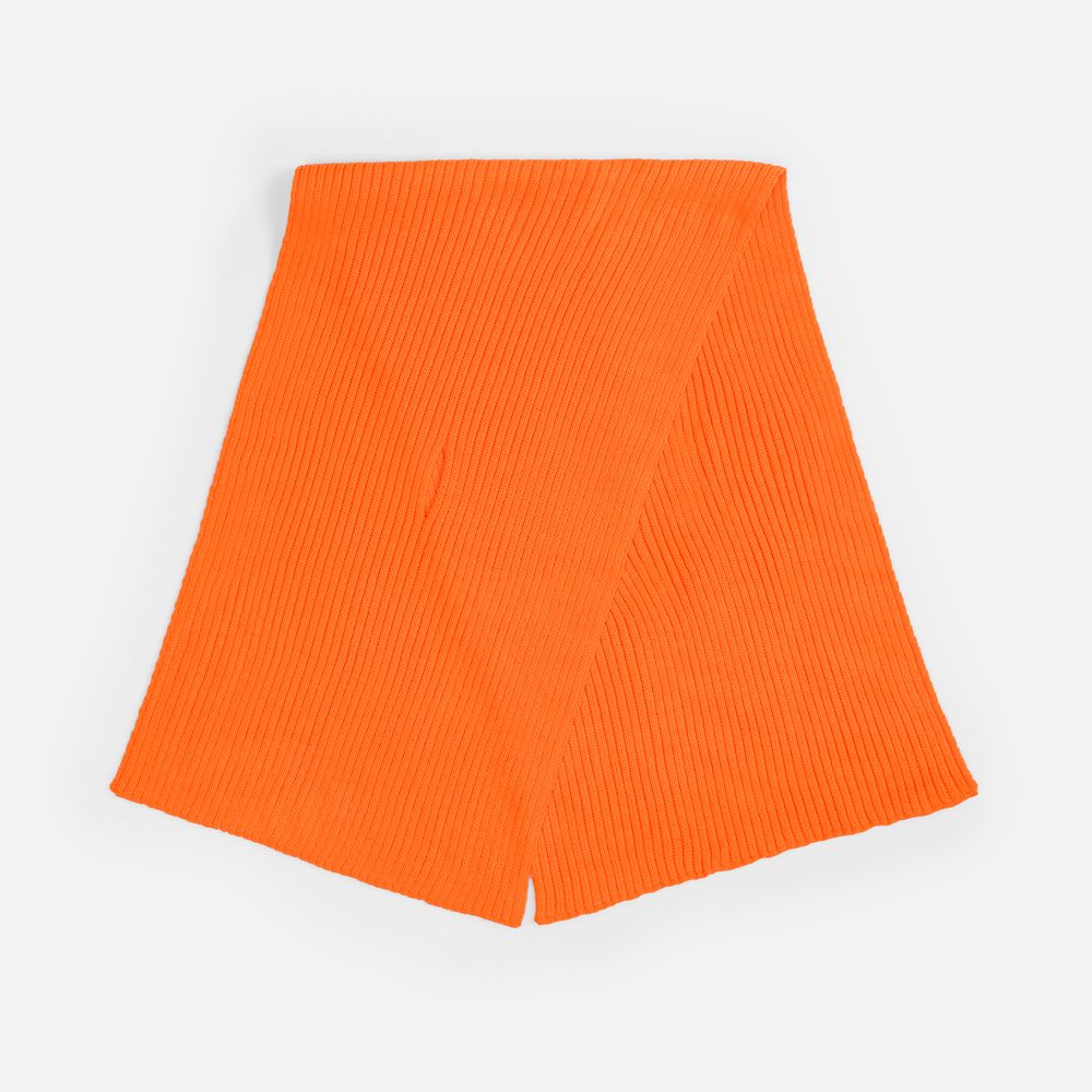 Однослойный шарф фактурной вязки с отверстием для быстрого и удобного завязывания.