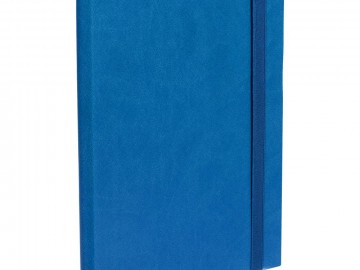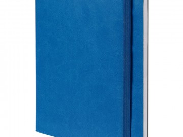 Ежедневник с гибкой обложкой, выполнен из материала Latte, синий НН, дополнен резинкой шириной 1 см, капталом и ляссе синего цвета.