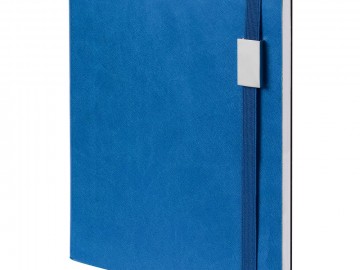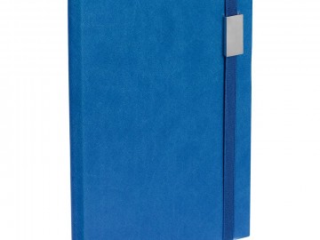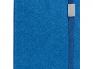 Ежедневник с гибкой обложкой, выполнен из материала Latte, синий НН, дополнен резинкой шириной 1 см с металлическим шильдом, капталом и ляссе синего цвета.
