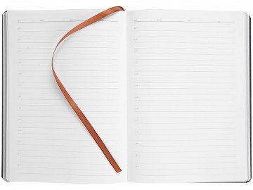 Ежедневник с твердой обложкой и золотистым обрезом, выполнен из материала Saffian, коричневый, дополнен ляссе в цвет обложки.