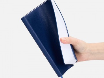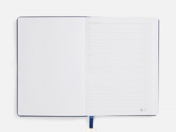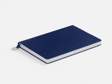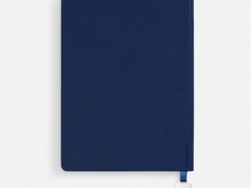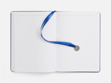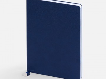 Ежедневник с гибкой обложкой, выполнен из материал La Fite, синий НН, дополнен ляссе в цвет обложки с металлическим шильдом.