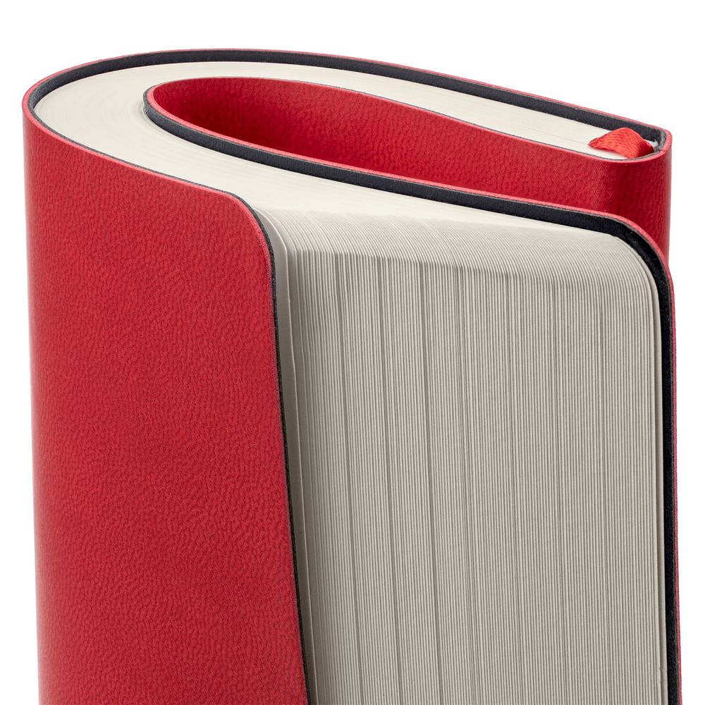 Ежедневник с гибкой обложкой, выполнен из материала Latte, красный, дополнен ляссе в цвет обложки.