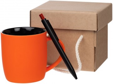 Набор Color Block: кружка и ручка, оранжевый с черным