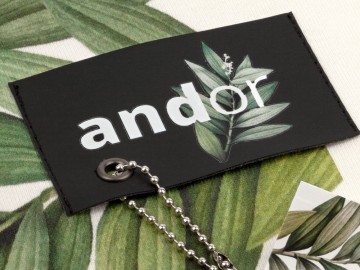 Лейбл пришивается по коротким сторонам с перегибом или без. Пришив по периметру возможен по запросу.