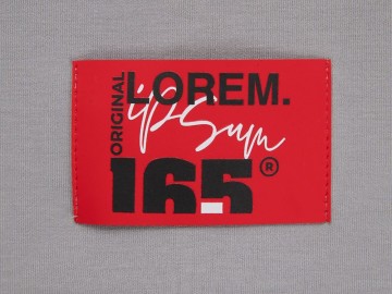 Лейбл пришивается по коротким сторонам с перегибом или без. Пришив по периметру возможен по запросу.