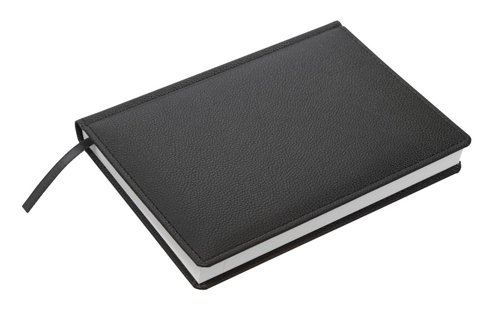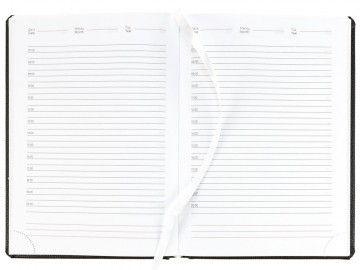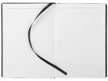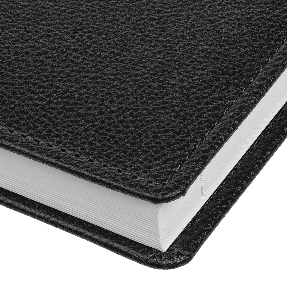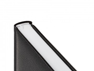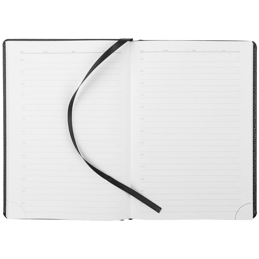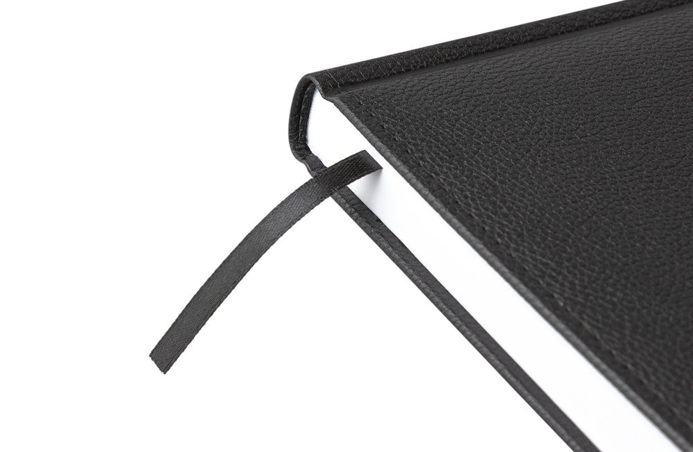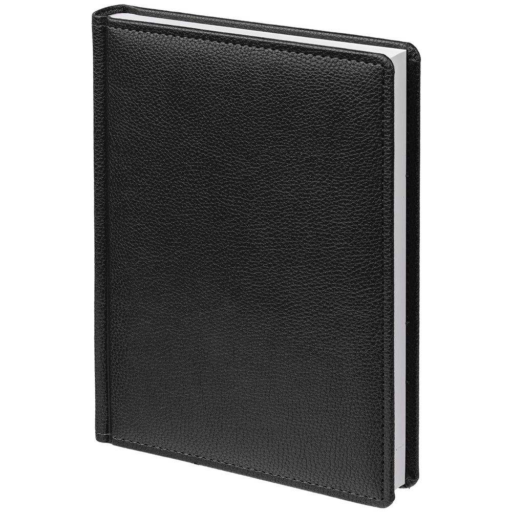 Ежедневник в твердой обложке c поролоном, выполнен из материала La Fite, черный АА, дополнен ляссе белого цвета.
