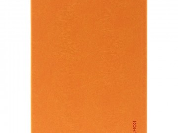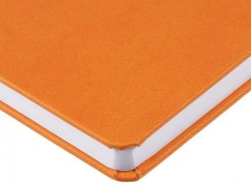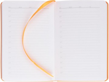 Ежедневник с твердой обложкой, выполнен из материала Latte, оранжевый ОО, дополнен ляссе в цвет обложки.
