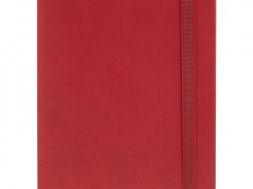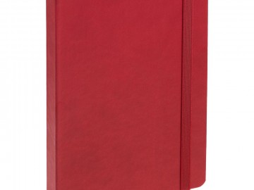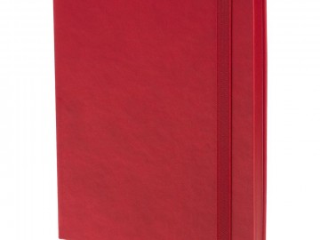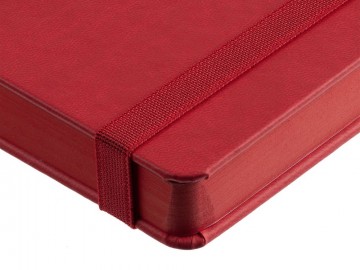 Ежедневник с твердой обложкой, выполнен из материала Latte, красный РР, обрез красного цвета, дополнен резинкой и ляссе красного цвета.