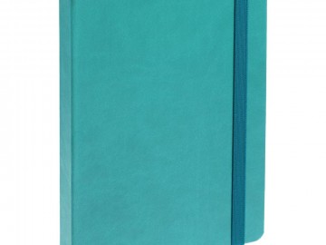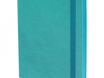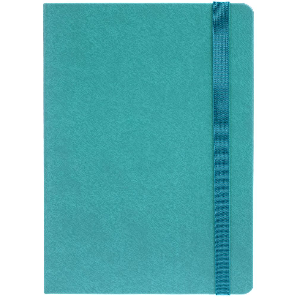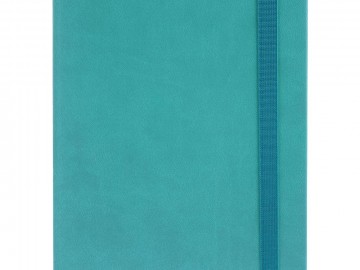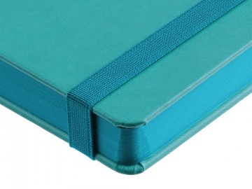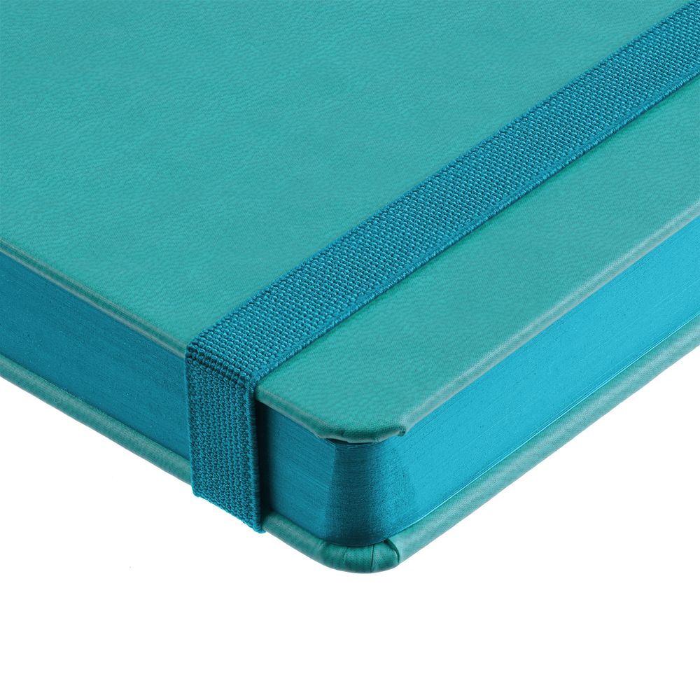 Ежедневник с твердой обложкой, выполнен из материала Latte, цвет морской волны II, обрез бирюзового цвета, дополнен резинкой и ляссе бирюзового цвета.