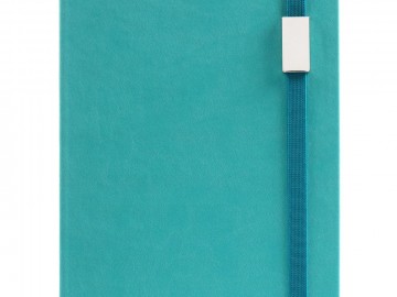 Ежедневник с твердой обложкой, выполнен из материала Latte, цвет морской волны II, обрез бирюзового цвета, дополнен ляссе бирюзового цвета и резинкой с металлическим шильдом.