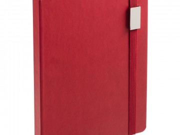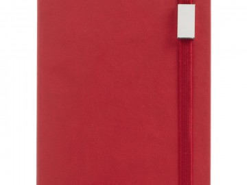 Ежедневник с твердой обложкой, выполнен из материала Latte, красный РР, обрез красного цвета, дополнен ляссе красного цвета ирезинкой с металлическим шильдом.