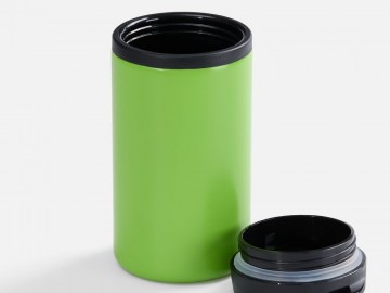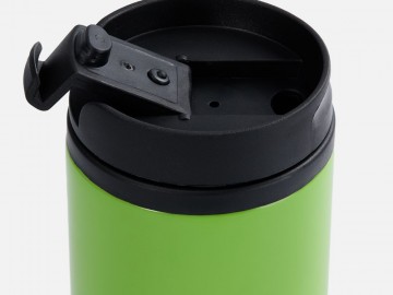 Двухслойная конструкция из пищевого пластика внутри и нержавеющей стали снаружи. Герметичная завинчивающаяся крышка с откидным клапаном для питья.