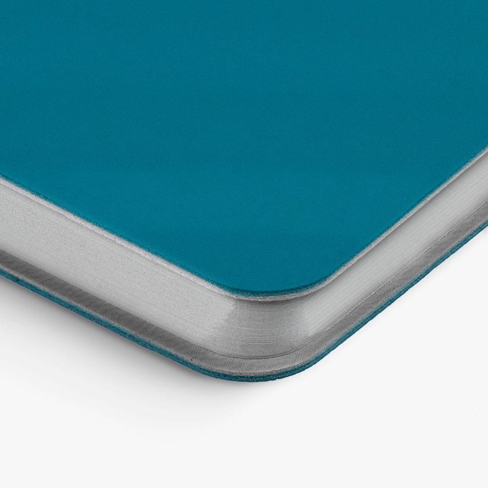 Ежедневник с гибкой обложкой выполнен из материала Soft Touch, цвет морской волны II и серого Latte (внутренняя часть обложки).