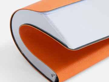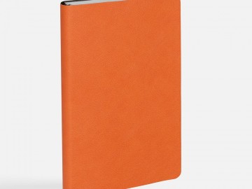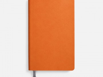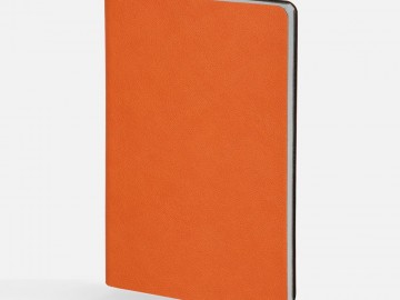 Ежедневник с гибкой обложкой, выполнен из материала Petrus, оранжевый ОО, дополнен серым ляссе с металлическим шильдиком.