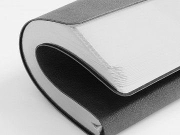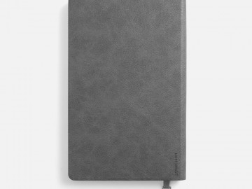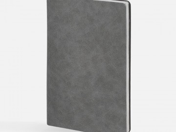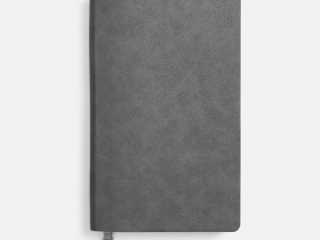Ежедневник с гибкой обложкой, выполнен из материала Petrus, серый СС, дополнен серым ляссе с металлическим шильдиком.