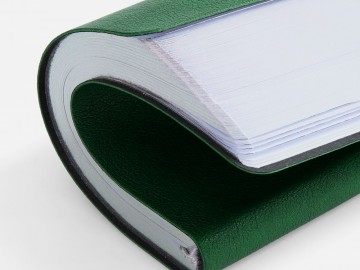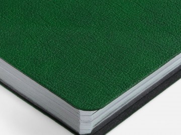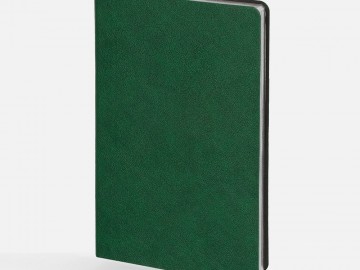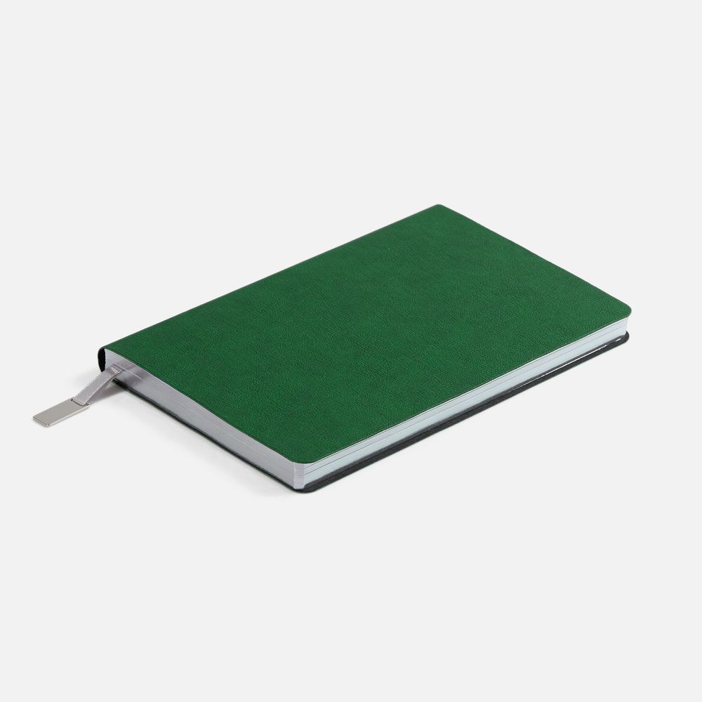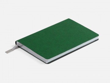Ежедневник с гибкой обложкой, выполнен из материала Petrus, зеленый FF, дополнен серым ляссе с металлическим шильдиком.