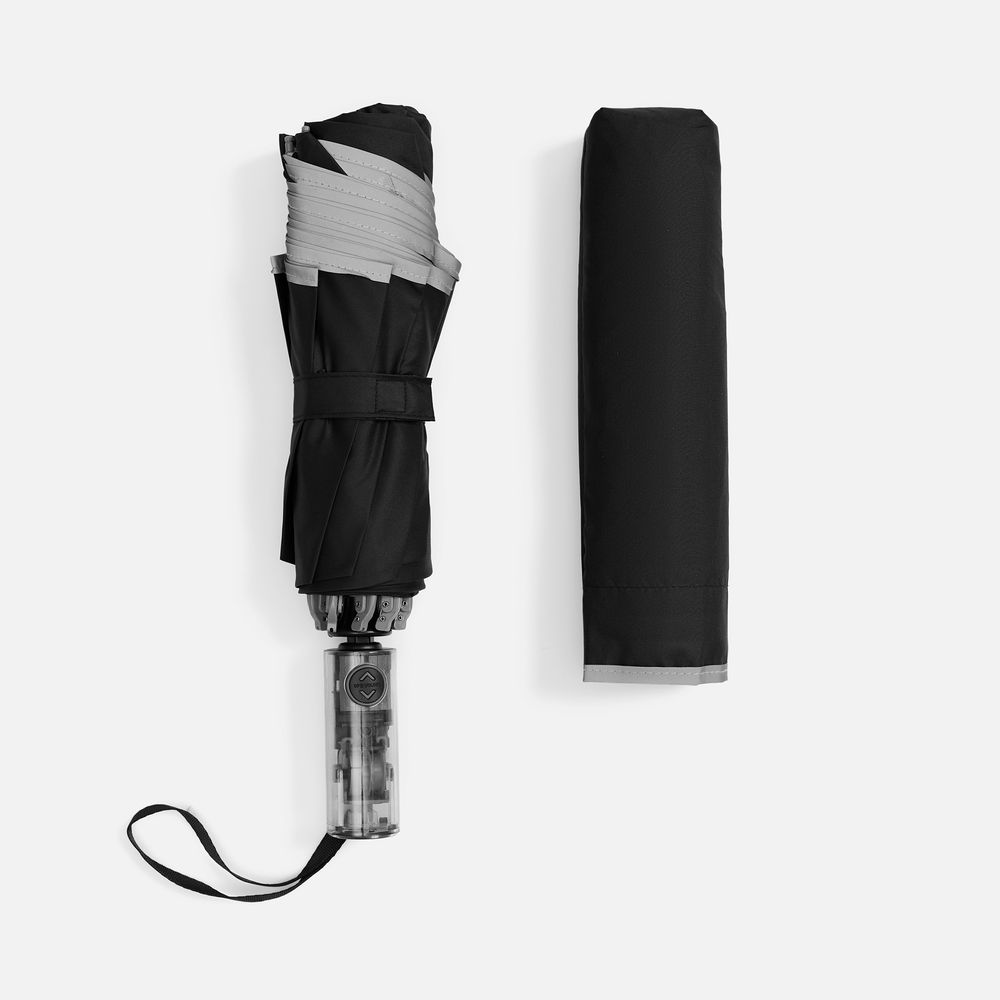 Зонт наоборот складной Futurum со светоотражающим кантом, черный