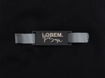 Шильдик не пришивается на изделие самостоятельно, его необходимо надеть на шнурок, кожаный лейбл или текстильную стропу. Добавьте нанесение «Крепление (кастомизация)» и сделайте его групповым для всех товаров, которые необходимо соединить.