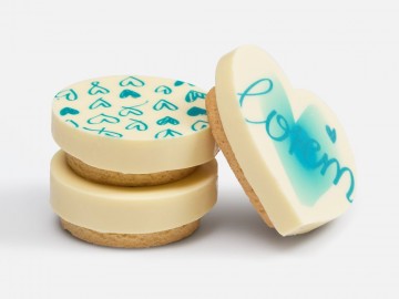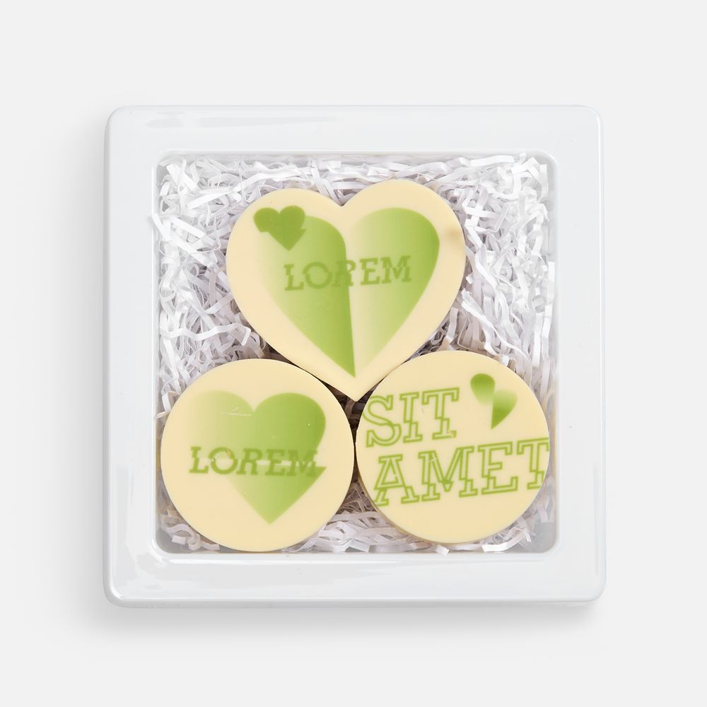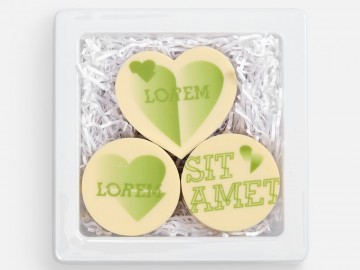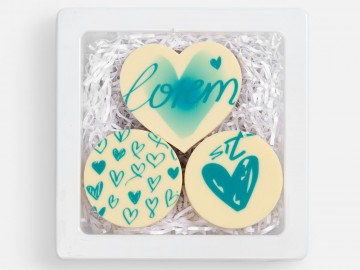 Набор из трех печений представлен в элегантной коробке с атласной лентой — готовый подарок, который говорит о вашем внимании к деталям.