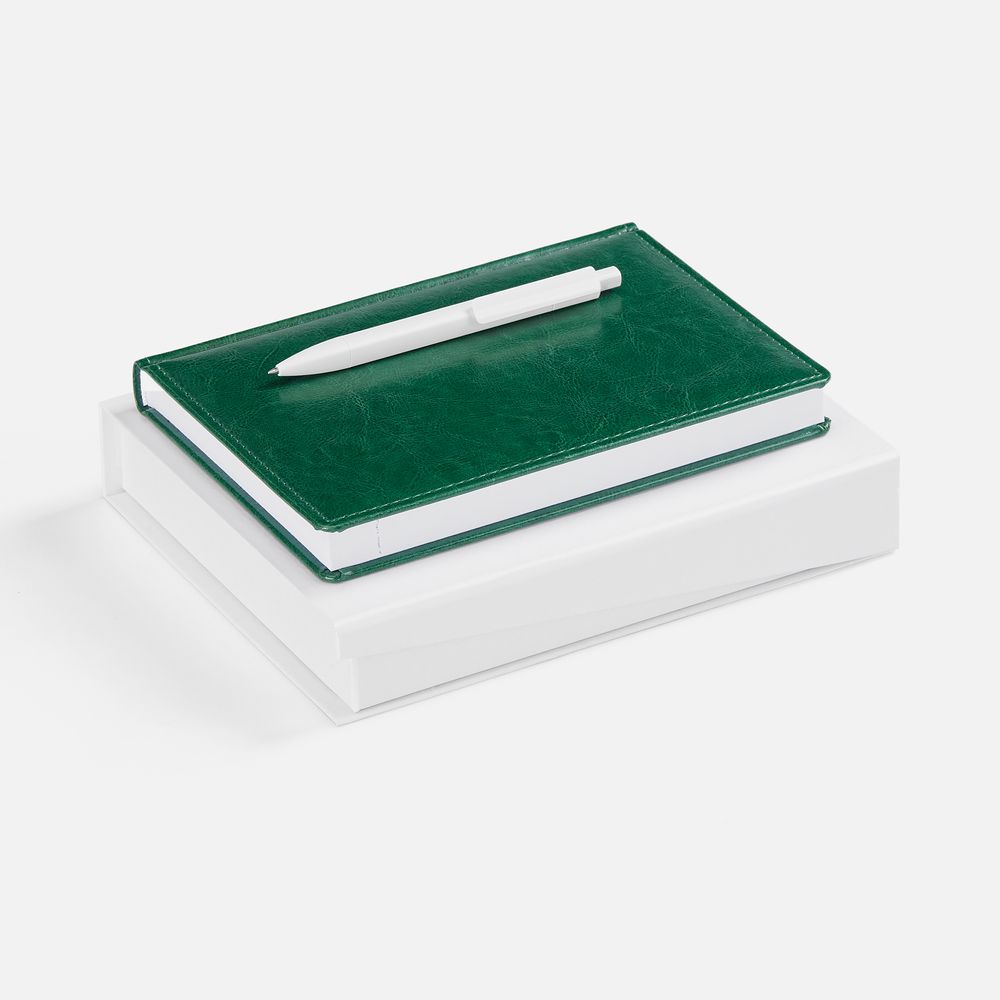 Две самые классические модели в одном деловом наборе: ежедневник Nebraska с «пухлой» обложкой и ручка Raja — кажется, они никогда не выйдут из моды.