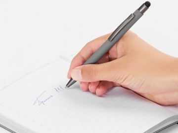 Ручка шариковая Atento Soft Touch со стилусом, серая