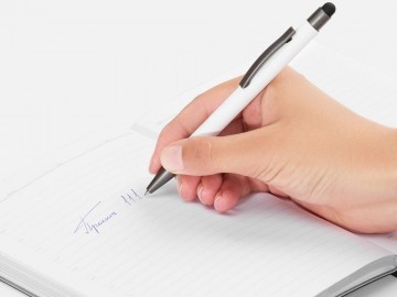 Ручка шариковая Atento Soft Touch со стилусом, белая