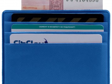 Чехол для карточек из искусственного материала, имитирующего сафьяновую кожу, с шестью отделениями для кредитных карт и одним — для сложенных купюр.