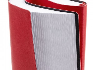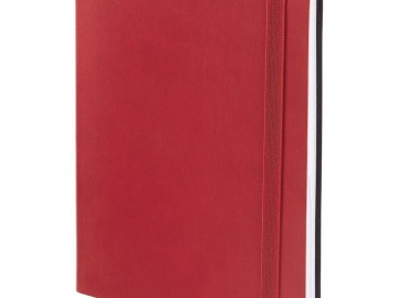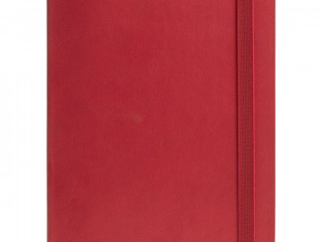 Ежедневник с гибкой обложкой выполнен из материала Latte, красный РР, и дополнен резинкой шириной 1 см, капталом и ляссе красного цвета.