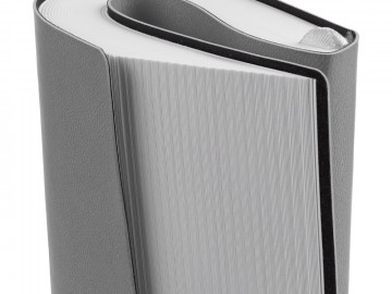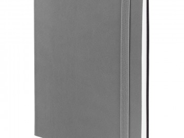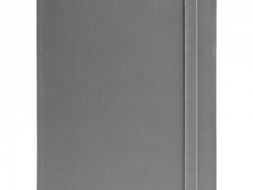 Ежедневник с гибкой обложкой выполнен из материала Latte, серый СС, и дополнен резинкой шириной 1 см, капталом и ляссе серого цвета.