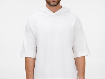 Футболка оверсайз унисекс с капюшоном Neofit, молочно-белая