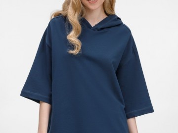 Футболка оверсайз унисекс с капюшоном Neofit, темно-синяя