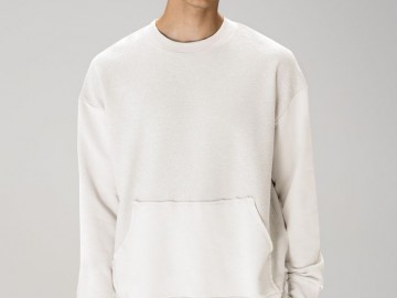 Благодаря особой конструкции, где часть деталей — перед и спинка — вывернута наизнанку, свитшот приобретает запоминающийся вид. Так внутренняя, обычно незаметная сторона материала превращается в лицевую: миниатюрные петельки бывшей изнанки становятся настоящим украшением толстовки, добавляя ей оригинальности и эффект невероятно приятной плюшевости.