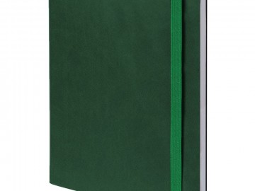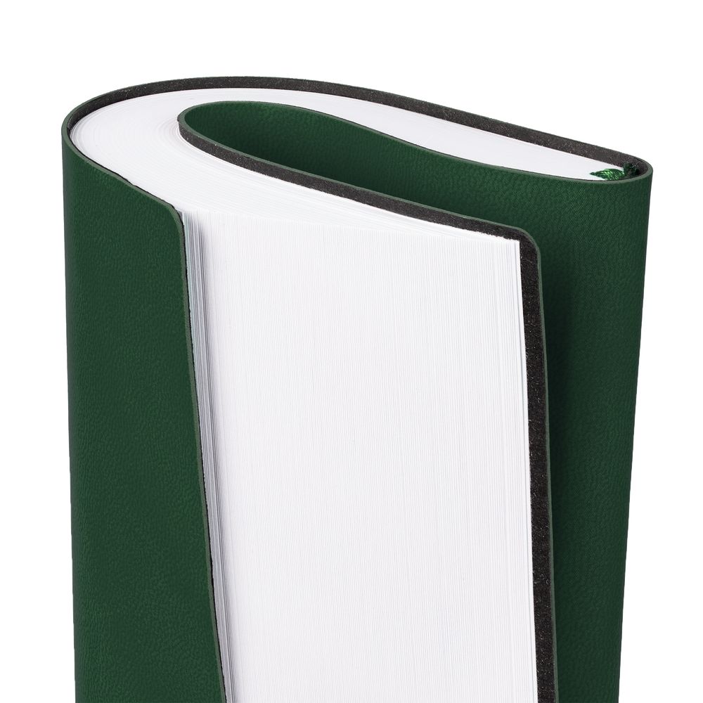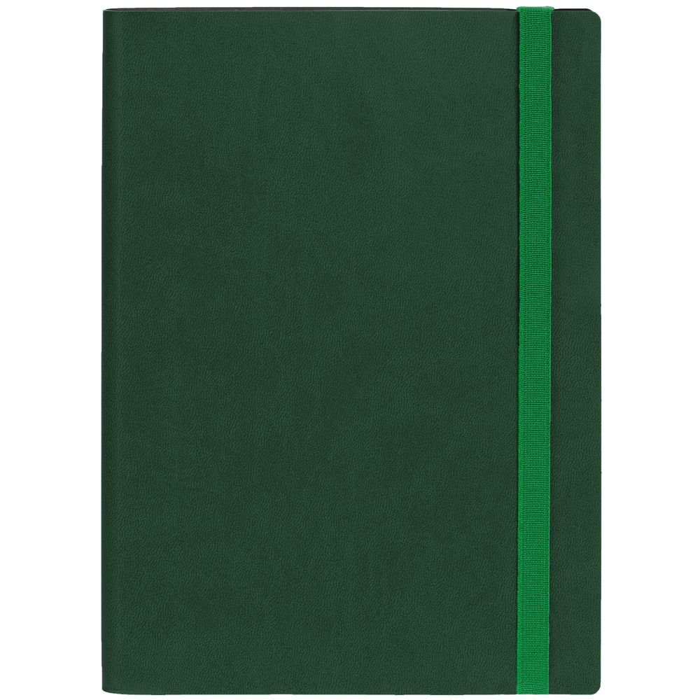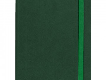 Ежедневник с гибкой обложкой выполнен из материала Latte, зеленый FF, и дополнен резинкой шириной 1 см, капталом и ляссе в цвет обложки.