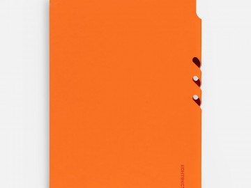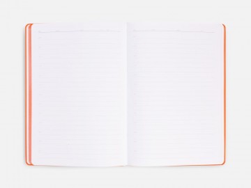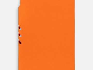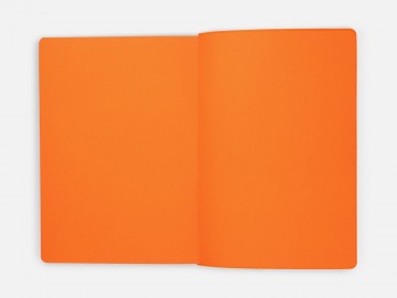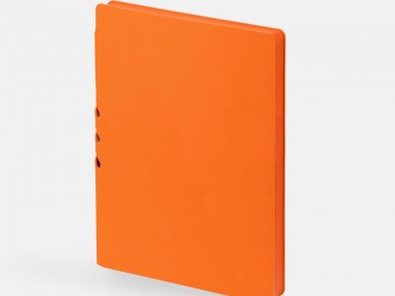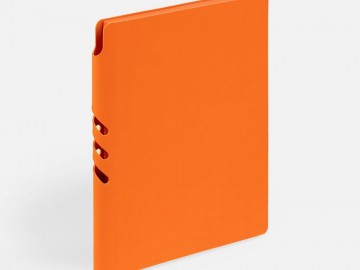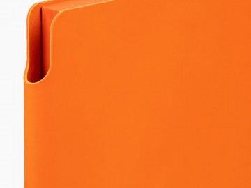 Гибкая обложка выполнена из материала Soft Touch, оранжевый OO и Latte, оранжевый OO (внутренняя часть обложки). Внутри корешка — специальное место для крепления ручки размером до 15х1 см.
