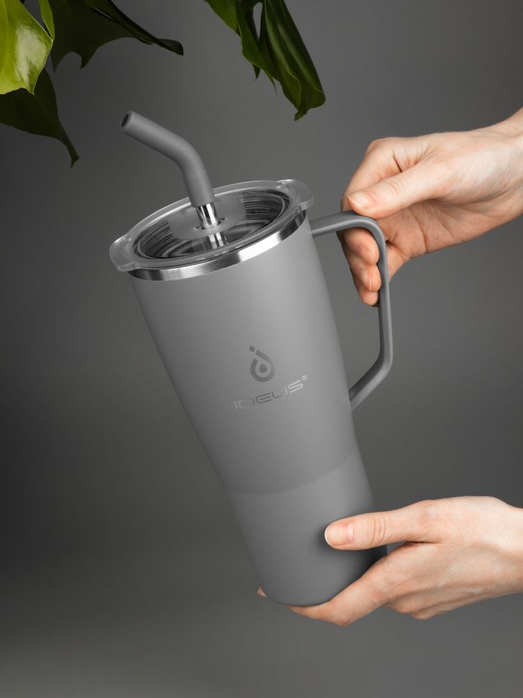 - 2 крышки в комплекте: одна на 100% герметичная с механизмом блокировки отверстия для питья, вторая — с отверстием для трубочки