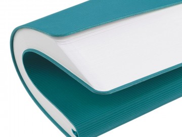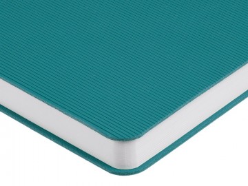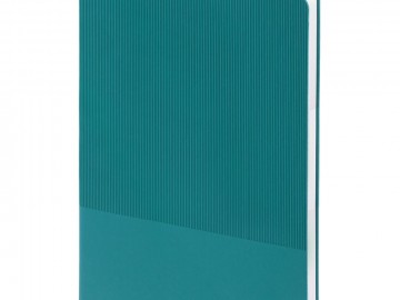Ежедневник с гибкой обложкой выполнен из материала Soft Touch, цвет морской волны II и Latte, цвет морской волны (внутренний материал); дополнен ляссе бирюзового цвета и фактурным тиснением обложки.